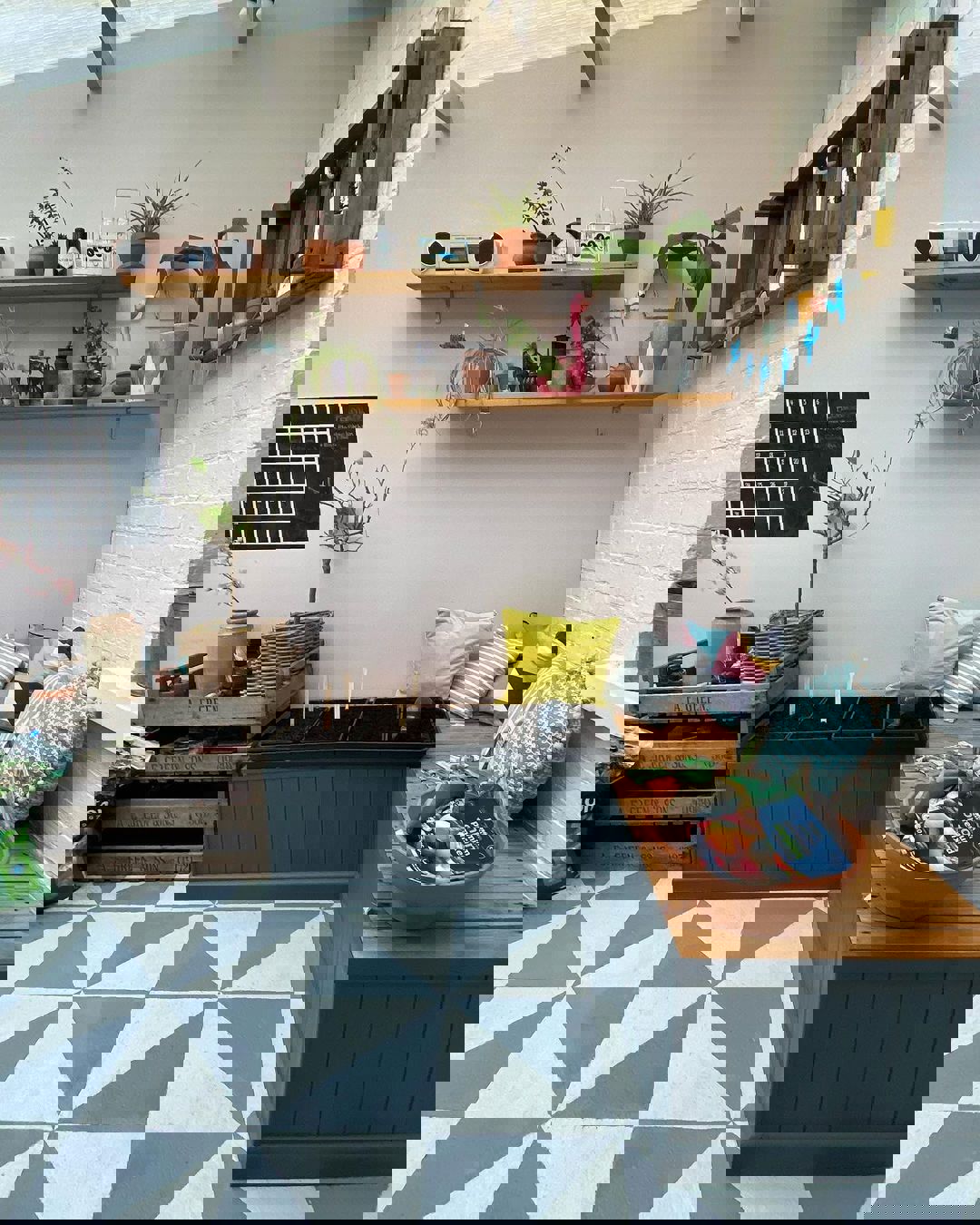 You could scatter the top of your low-level storage unit with cosy cushions to create a comfortable place to sit while you remove your boots and coats. Or, you could be a little more creative and section off a part of your storage surface to place a herb garden or to grow indoor plants.
